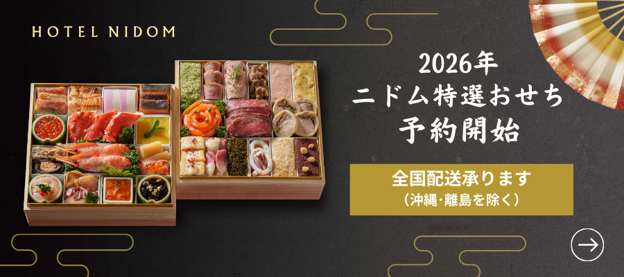 2025/09/30お知らせニドム特選おせち二段重 | ご予約のご案内 -